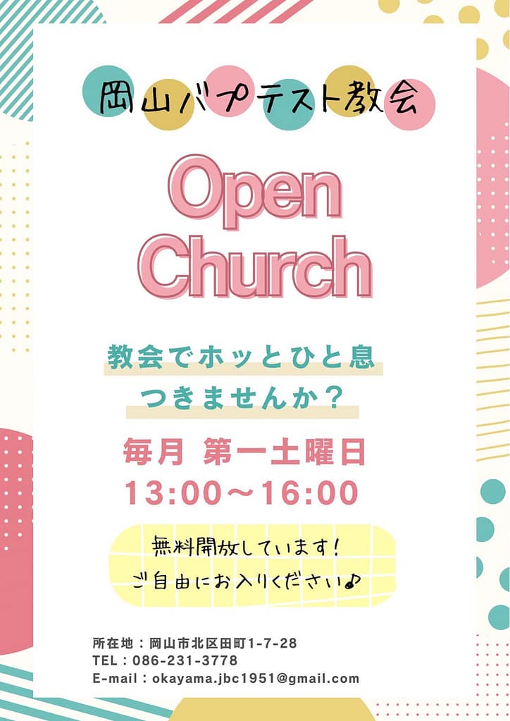 毎月第1土曜日 PM1:00~PM4:00 教会を開けています。